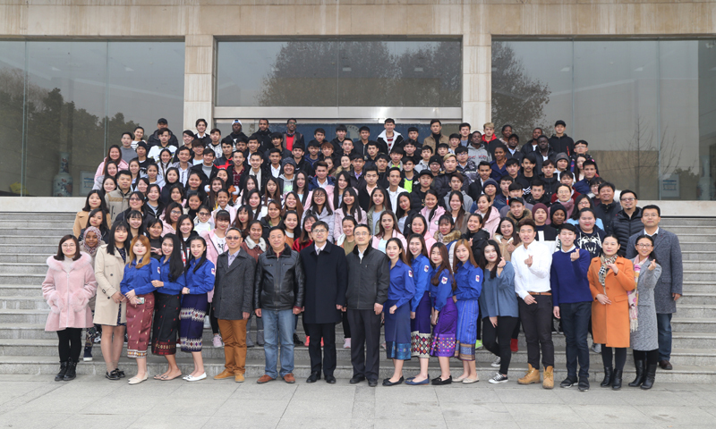 结业典礼后,来华职工迎新年联欢会正式拉开大幕。在欢快的音乐中,老挝女生翩翩起舞,韩国员工赵贤奎的rap引来全场喝彩,柬埔寨同学们的劲舞则让大家领略到了不同地域风情,校园十佳歌手、来自老挝的左一同学带来的中文歌曲则是将联欢会带向另一种清新、朴素的境界。基础部吴杨老师的登台献唱将晚会带向了高潮。联欢会的游戏环节则突出了一个“乐”字,让同学们放下了学习的压力,展示一个不一样的自我。穿插在歌舞节目中的抽奖环节更是一次又一次地带动现场气氛。