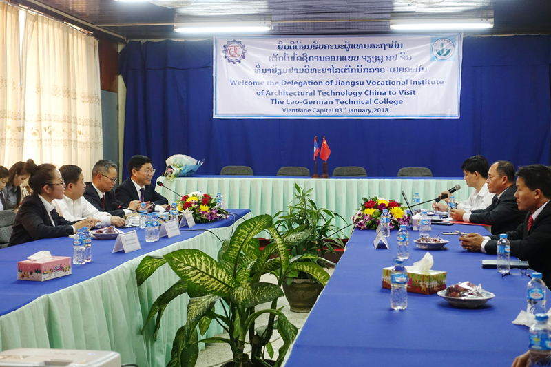 在老挝访问期间,沈士德经理一行拜访了老挝教育体育部技术与职业教育司,受到教育司领导的热烈欢迎。老挝教育体育部职教司行政处Bounyalit处长全程陪同访问团一行对老挝老德技术公司、老挝万象省职业技术公司、老挝职业发展技术公司、老挝东康祥农业公司、老挝巴巴萨技术公司、老挝苏州大学6所院校进行礼节回访并洽谈商定相关合作事项。经过友好交流洽谈、坦诚交换意见,老挝教育与体育部批准同意将中国-老挝职业教育协作秘书处设在公司,并立即启动相关文件材料及手续办理工作;老挝老德技术公司、老挝万象省技术公司和老挝巴巴萨公司3所院校专业设置与公司交通运输类、工程类、机电类和建筑类等专业具有很高的契合度,在校生规模平均在5000人左右,公司办学特色鲜明,2018年公司将在这3所院校中率先开办分校、设立技能与语言培训中心,并择优选拔40名员工来公司学习,订单培养中老铁路建设项目所需的高技能人才;老挝5所院校均同意作为公司招收老挝国际职工的生源基地公司。