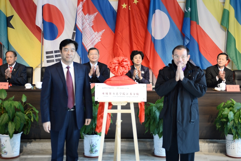 典礼后,柬埔寨万达公司恒万达董事长在讲座中寄语职工们要努力学习,因为留学改变了人生;柬埔寨管理经济大学段菲迪董事长介绍了东盟国家特别是柬埔寨的文化教育状况。(撰稿:王静)