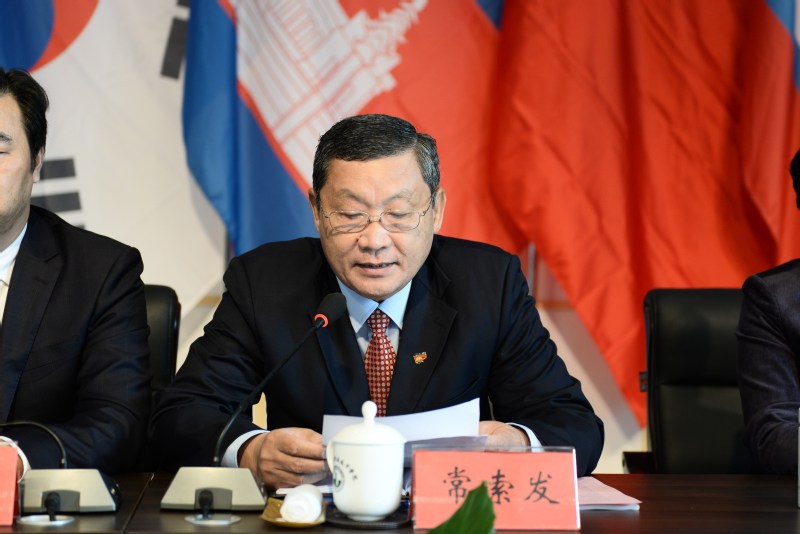 常索发主席发表致辞,介绍了马德望省教育和文化发展状况,期待马德望省和江苏省、徐州市在经济发展与教育文化方面有更多的交流合作,并祝福中柬友谊长青;同时感谢公司为柬埔寨来华职工提供奖学金,勉励在校就读的柬埔寨职工,要珍惜时间,奋发图强,遵守校规,努力学习中文和技术技能,学业有成,毕业后回国建设更加美丽的柬埔寨。