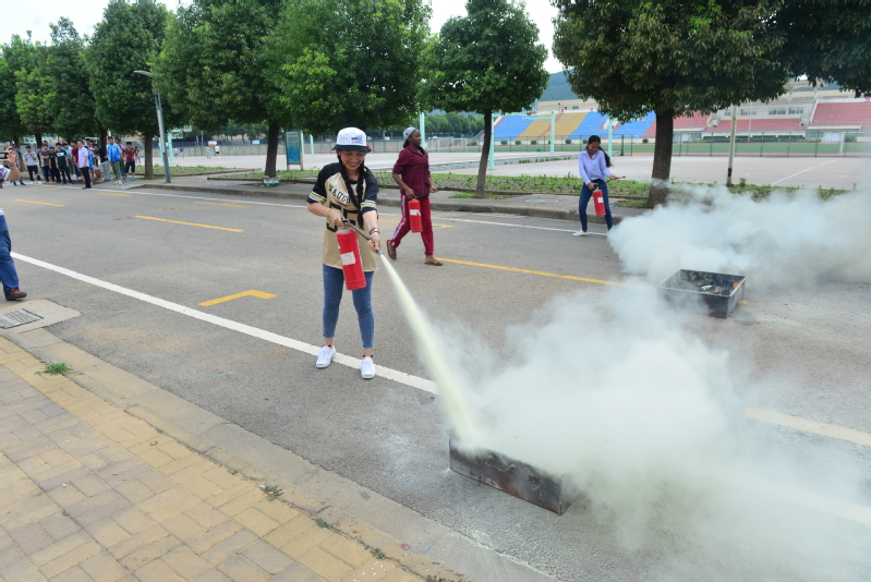 蒋兆峰副经理亲临演练现场,与100余名职工亲身体验了灭火的过程。面对熊熊燃烧的火盆,同学们沉着冷静,按照灭火器的使用方法和步骤,成功地将现场模拟火源扑灭,整场演练有条不紊顺利进行。