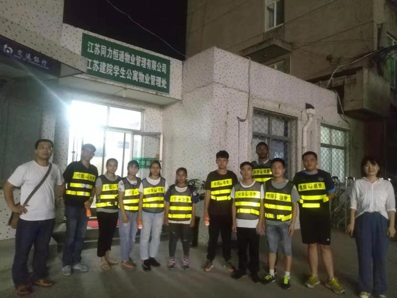 9月12日晚,一支列队整齐、肤色各异的校园巡查队伍吸引了众多员工的目光,他们身着巡查服,精神饱满地行走在校园主干道上。这支刚刚“上岗”的校园文明巡查队是由公司老挝、柬埔寨、科摩罗、哈萨克斯坦等不同国家的职工组成的。