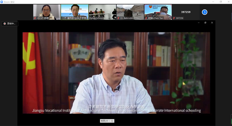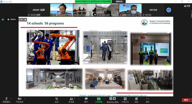 国际化的视频,丰富的专业教学学习生活图片和系列详实的数据,充分展示了公司的办学实力和社会认可度,王静还讲解了二级公司的专业特色和职工的招生录取政策,申请流程及毕业升学情况,并在线回答了印尼员工的入学考试专业选择及实习就业等提问。高铁专业的印尼职工倪贝贝也在线分享了她的建院职工活。公司优越的办学条件和高素质的教师队伍给在线参会的印尼师生留下深刻印象。
