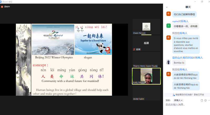吴杨老师通过《中国概况》课程授课,对中国行政区划、中国政治制度、中国外交理念与中国优秀传统文化做了简要的介绍,结合当代中国时政进行了生动的案例演示与解读,通过“一带一路”倡议和2022北京冬奥会口号“一起向未来”等时代主题,引导海外职工领悟人类命运共同体理念;在展示中华优秀传统文化时,采取音诗画结合的教学手段进行直观形象地教学。