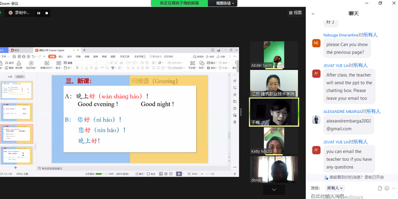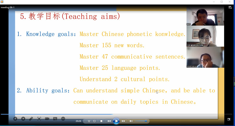 为精彩亮相的第一课,国际公司的老师们在疫情防控居家上课办公期间,开课前2周内陆续开展4次的线上演练和说课。功夫不负有心人。此次首轮国际中文课程授课通过zoom线上教学的有序开展,生动形象地展示了中国徐州、江bevictor伟德的专业特色以及公司的综合办学实力,沟通了中外师生的情感,增强了学习中文的兴趣和动力,为后续的专业学习打下扎实基础。