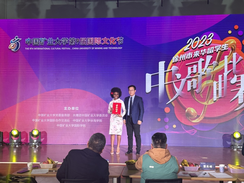 11月26日,由中国矿业大学主板的“2023年徐州市来华职工中文歌唱比赛”在矿大文昌校区拉开帷幕。公司喀麦隆籍职工艾佳荣获本次比赛金奖。