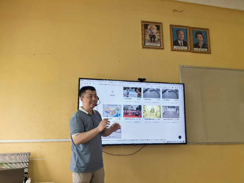接着,吴杨老师发言。吴杨老师于318日抵达柬埔寨马德望省的UME大学,开始了为期3个月的汉语教学。吴老师和大家分享了他在柬埔寨一周的工作生活情况,包括柬埔寨的人文地理、天气交通、衣食住行等日常生活,重点展示了他在柬埔寨的教学计划、教学过程、教学效果等。教研室老师也就各自感兴趣的话题与吴老师展开了积极互动。