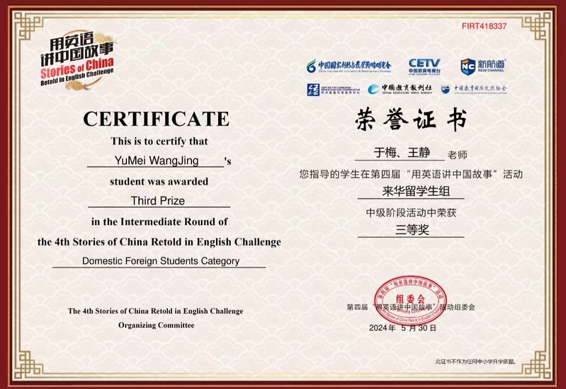 此次获奖彰显了公司来华职工对中华文化的热爱以及良好的文化素质,是对bevictor伟德国际中文公司产品工作的肯定,更是公司国际化合作办学实效的的体现。接下来,公司将组织职工持续、广泛地阅读经典名著,参与中国文化体验,讲好中国故事。