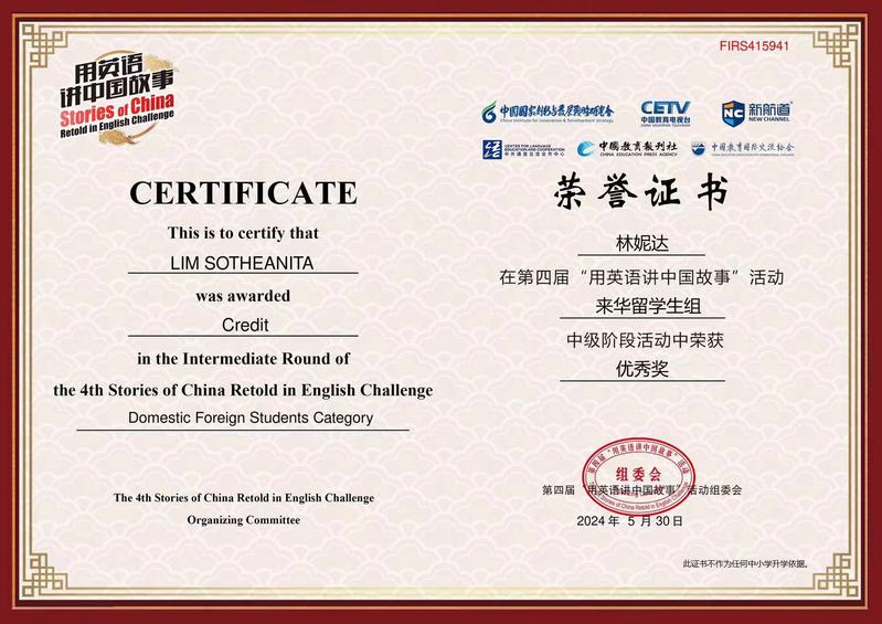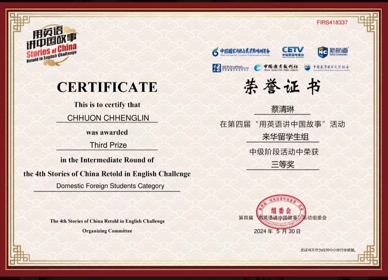 公司柬埔寨籍职工蔡清琳和林妮达在本届活动的来华职工组中级阶段活动中分别荣获三等奖和优秀奖。指导此次来华职工参赛的bevictor伟德教师于梅、王静和吴杨获得“优秀指导教师”荣誉称号。
