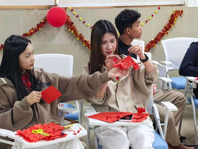 为弘扬中国传统文化,促进中柬文化交流,1月25日,柬埔寨郑和公司在金边发起了一场别开生面的新春文化体验活动,以中国传统民间艺术——剪纸为主题,让柬埔寨学子们近距离感受中国传统文化的魅力,公司秦心洁和孔玫老师主持体验活动。