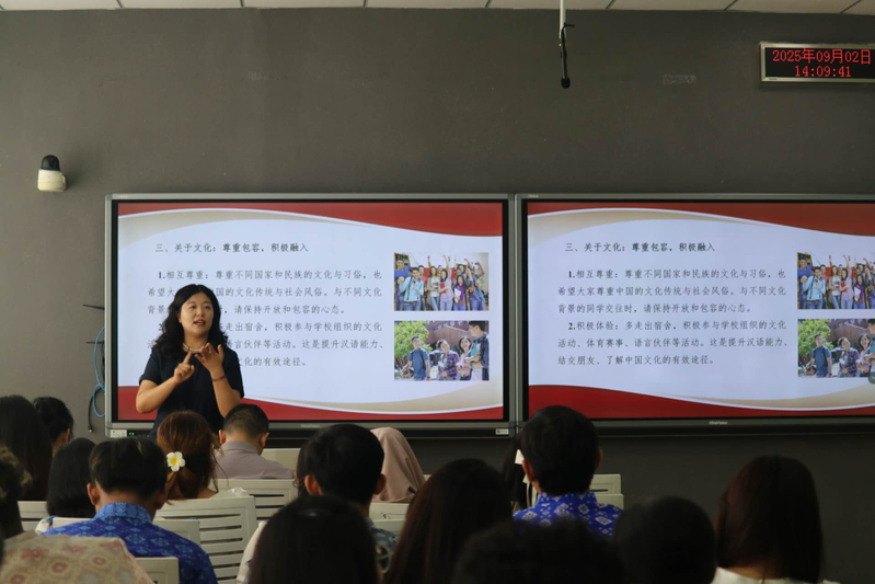 活动伊始,国际教育科科长张雨婷面向全体职工召开秋学期集体班会,围绕学习、生活、安全与文化适应等方面进行了全面指导,强调了新学期的学习要求与纪律规范,鼓励职工积极参与课程实践与语言学习。提醒员工遵守宿舍管理规定、注意用电安全、健康管理,建议职工主动融入校园生活,体验中华优秀传统文化,促进跨文化理解与友谊。班会内容细致实用,为职工提供了明确的方向和支持。