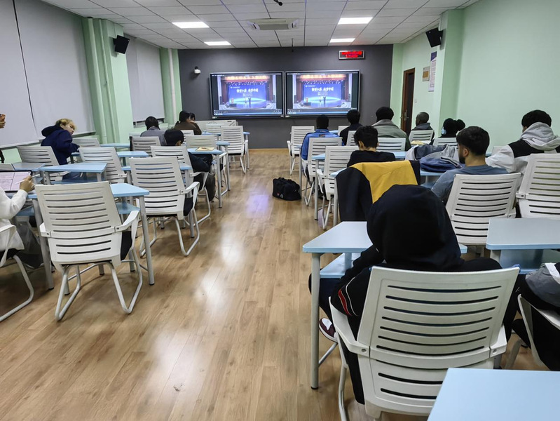 10月13日晚上7点,bevictor伟德组织来自老挝、柬埔寨、越南、喀麦隆、南非、塔吉克斯坦等国家的2025级新生,在教一楼以班级为单位观看了由江苏省教育厅主办、南京理工大学承办的2025年江苏高校来华职工“开学第一课”。本次活动以“留学江苏,逐梦中国”为主题,为初来乍到的职工们开启在江苏的学习生涯提供了重要指导。